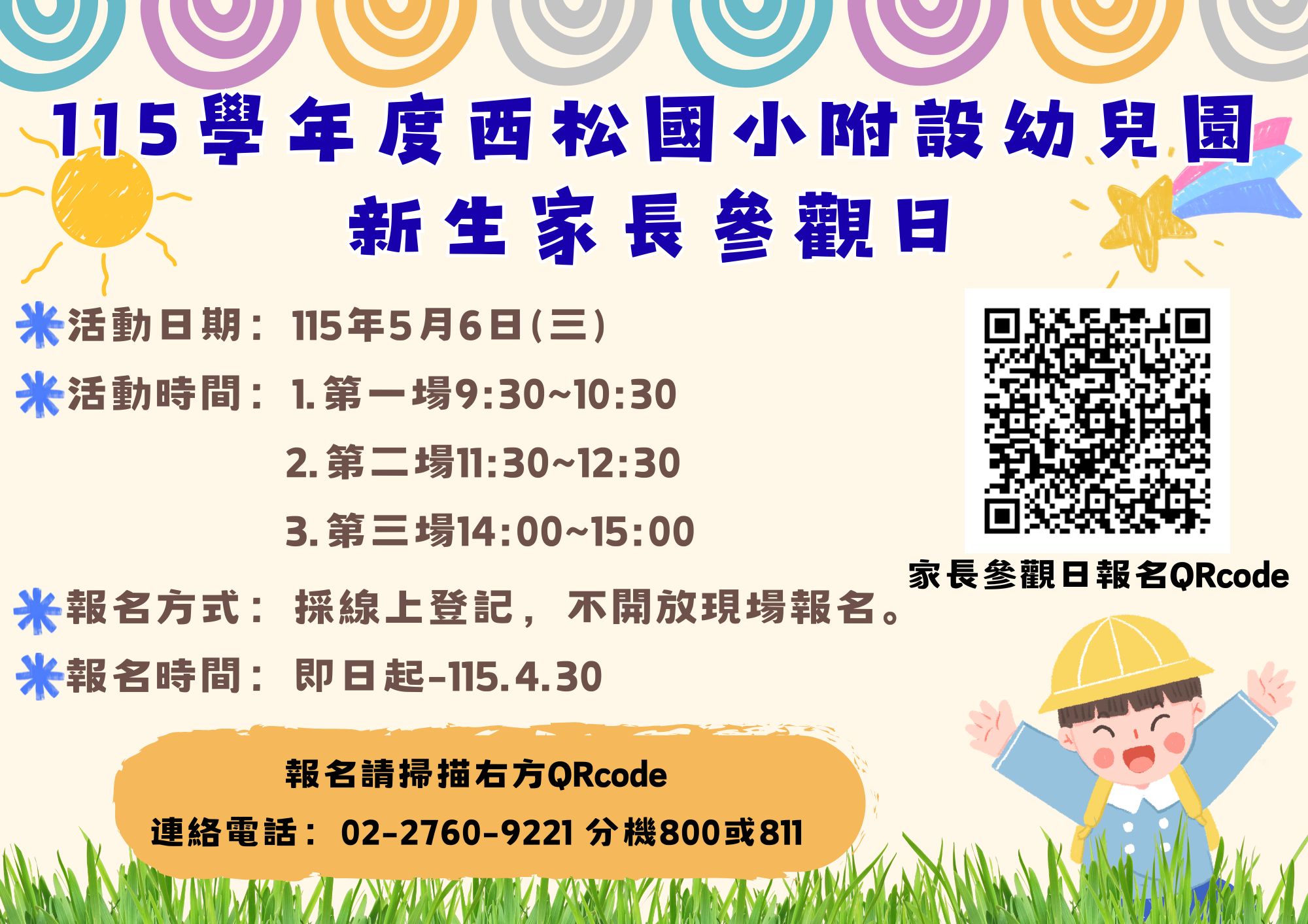 115學年度西松國小附設幼兒園 新生家長參觀日開始報名囉!