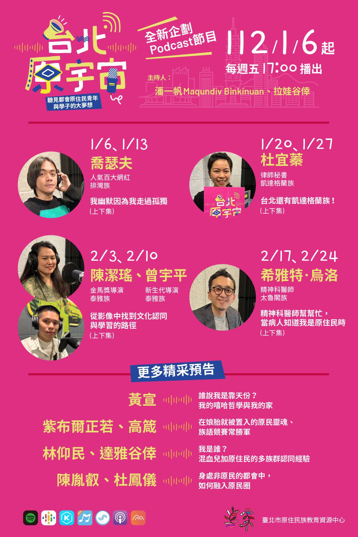 臺北市原住民族教育資源中心(以下簡稱本中心)辦理 「111 年度臺北原夢原住民勵志事蹟教材-台北原宇宙Podcast節目」