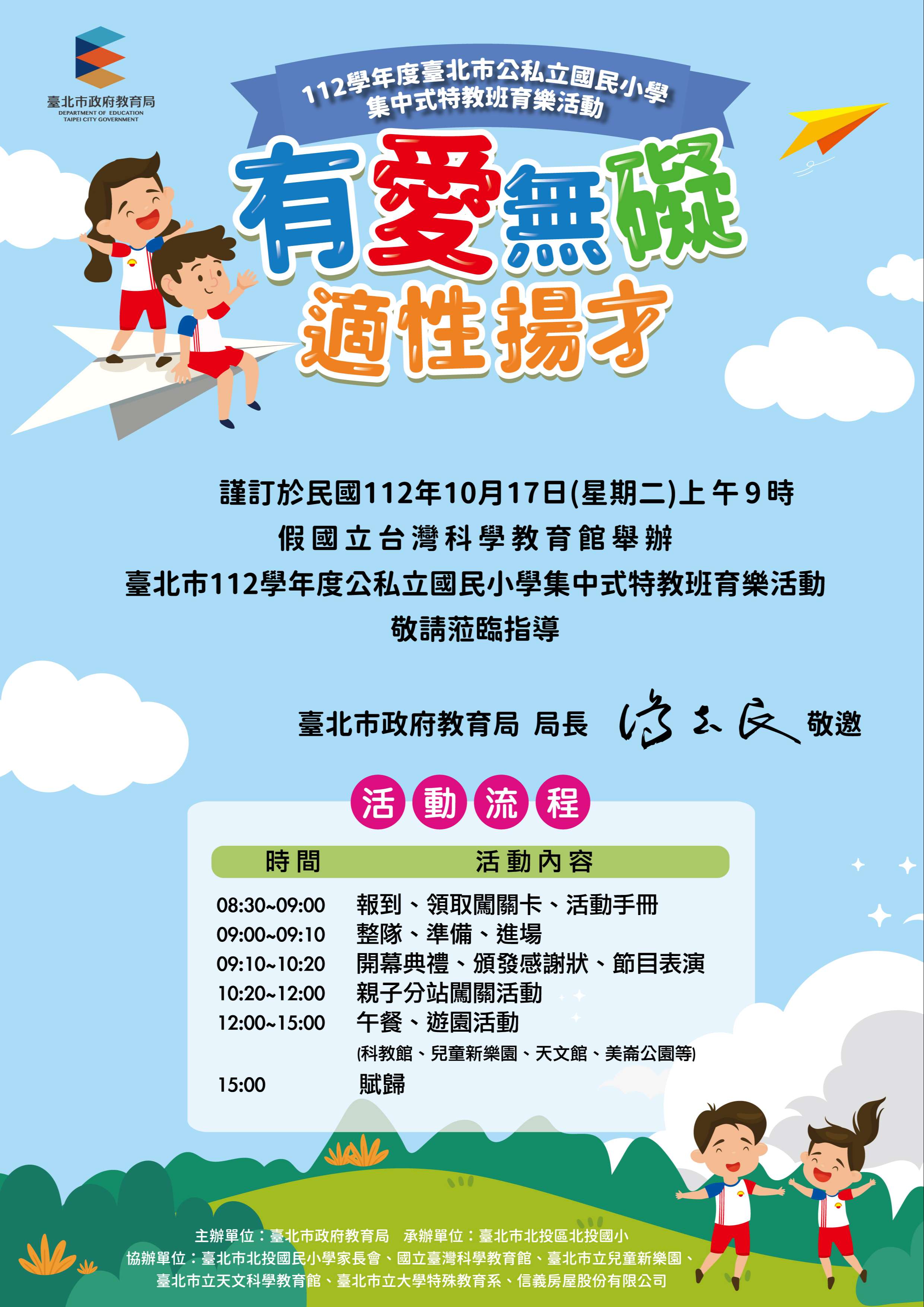 112學年度臺北市公私立國民小學集中式特教班育樂活動敬邀貴校師生踴躍參加。