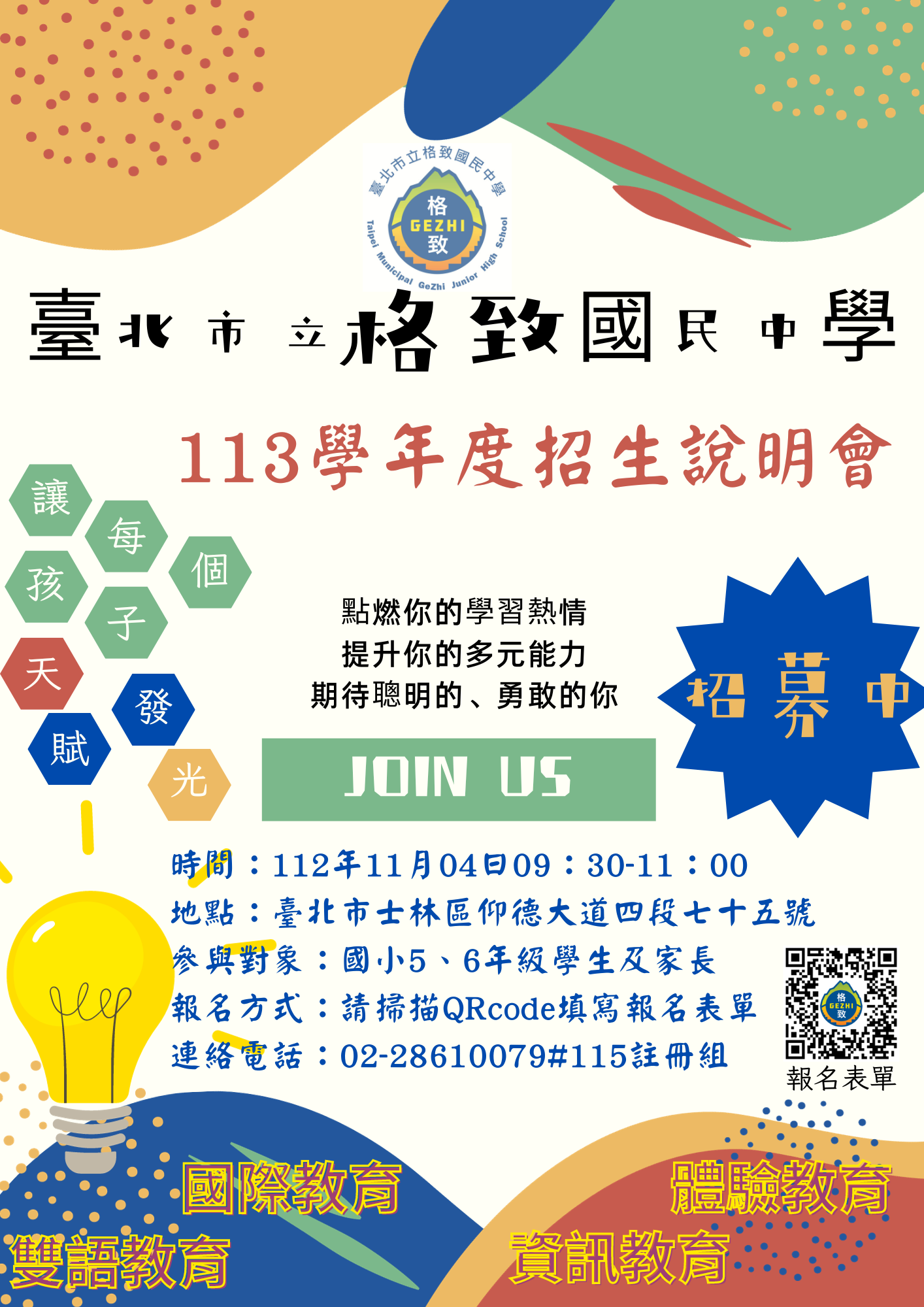 本案相關事宜請洽格致國中註冊組(02-28610079分機115)