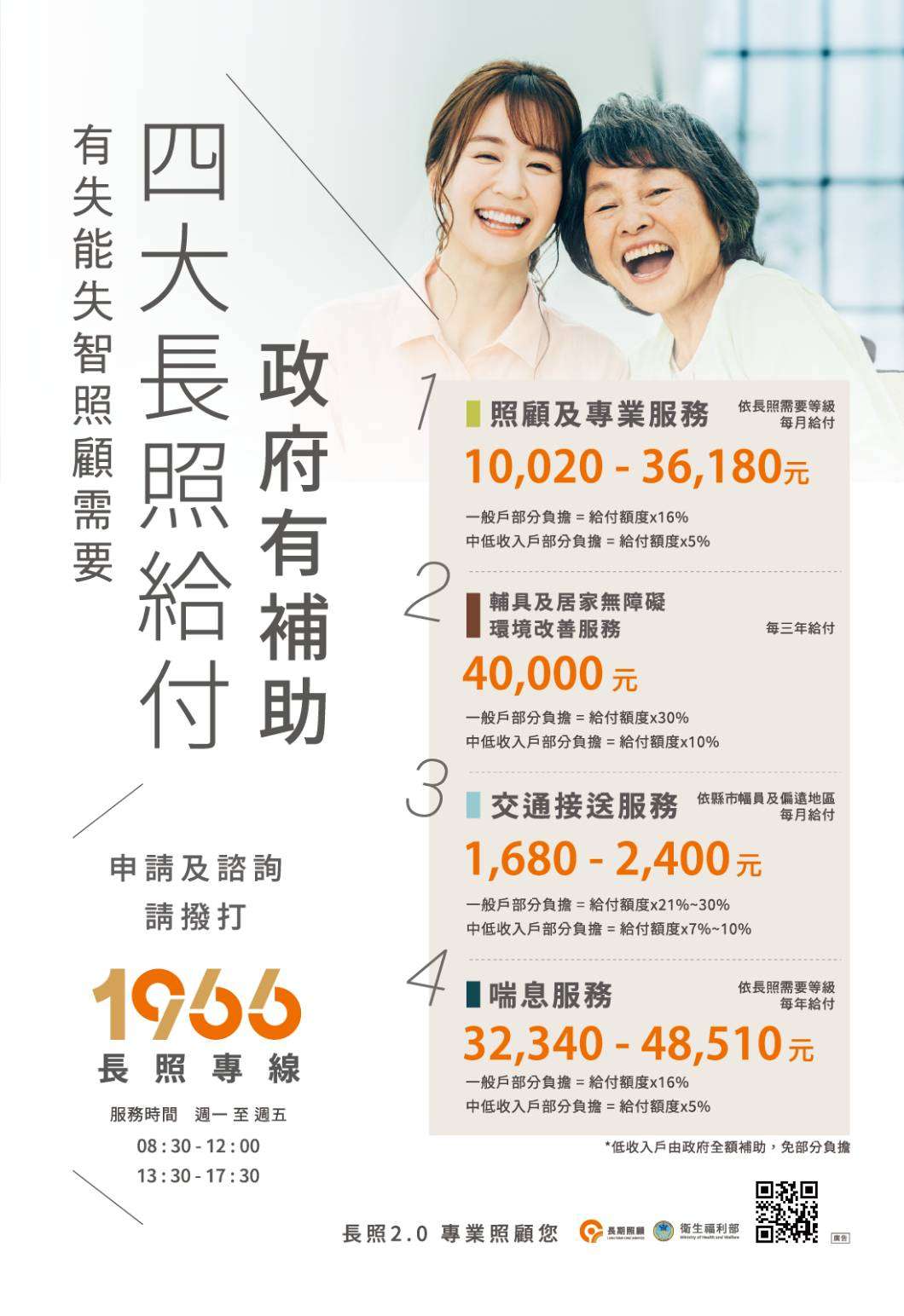 有鑑於我國已邁入高齡社會,對於長期照顧服務之需求逐 年增加,為增強民眾對長照2.0政策及1966長照專線之知曉 度,並促進對高齡照顧議題與服務資源之關注,歡迎民眾參酌「1966長照專線」。
