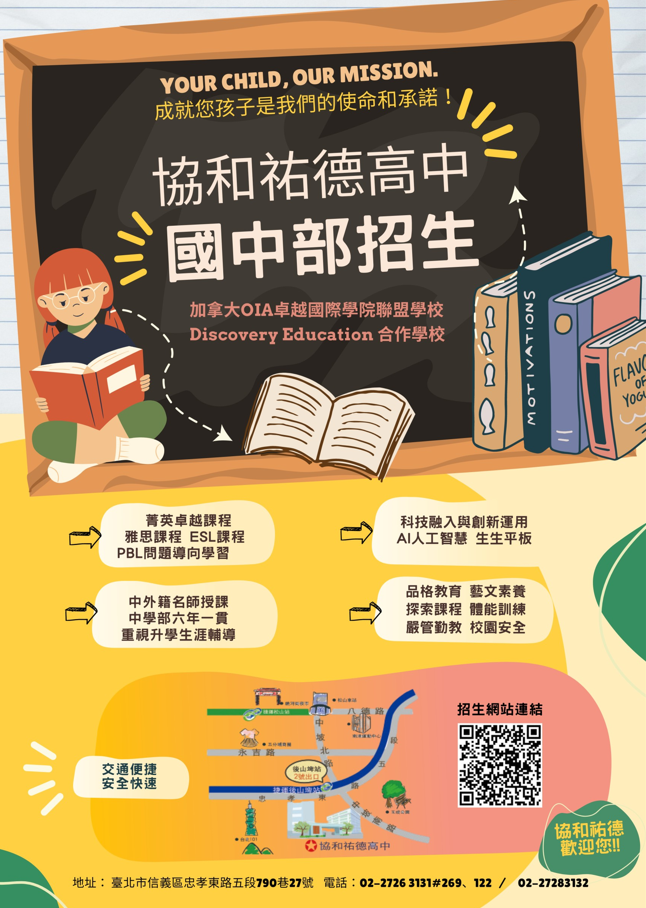 祐德高級中等學校將於114學年度招收國中部七年級學生兩班共80人,檢附招生DM,歡迎學生家長參加各場次招生說明會,會中說明招收國中部之教育理念、辦學願景及課程特色…等,歡迎關心孩子教育的家長踴躍報名。