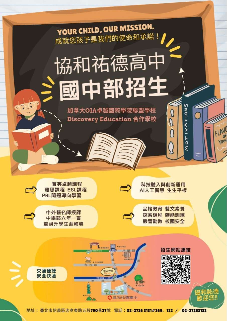 附件為國中部招生DM,掃描DM上之QR code,可查閱國中部網頁及說明會場次,並填具報名表單參加說明會。