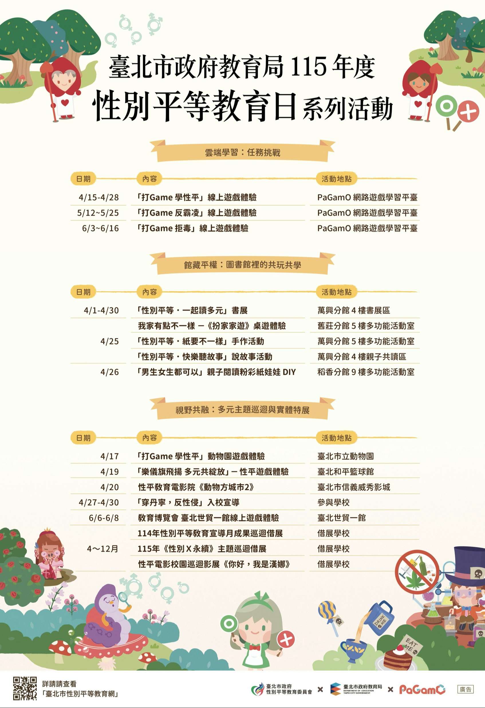 四、本市響應性別平等教育日配合辦理活動資訊已公告在本市