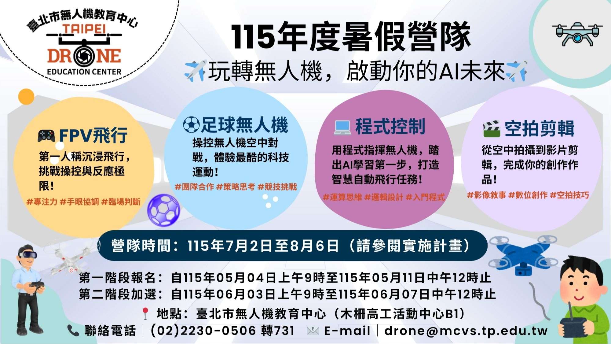 臺北市無人機教育中心辦理「115年度無人機暑假營隊」